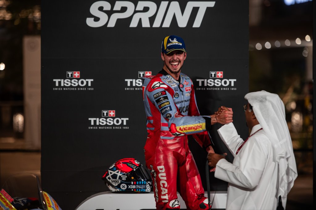 Senza dubbio la miglior gara dell’anno per il Team Gresini MotoGP che nella sprint di Losail parte in prima con entrambi i suoi alfieri e poi chiude con Diggia secondo e Alex Marquez quarto. Un sabato da ricordare soprattutto per l’italiano che nonostante una “falsa partenza” è bravissimo a rimontare chiudendo solo dietro a Martin e lasciando il vuoto dietro di sé (2 secondi a Marini, terzo).
