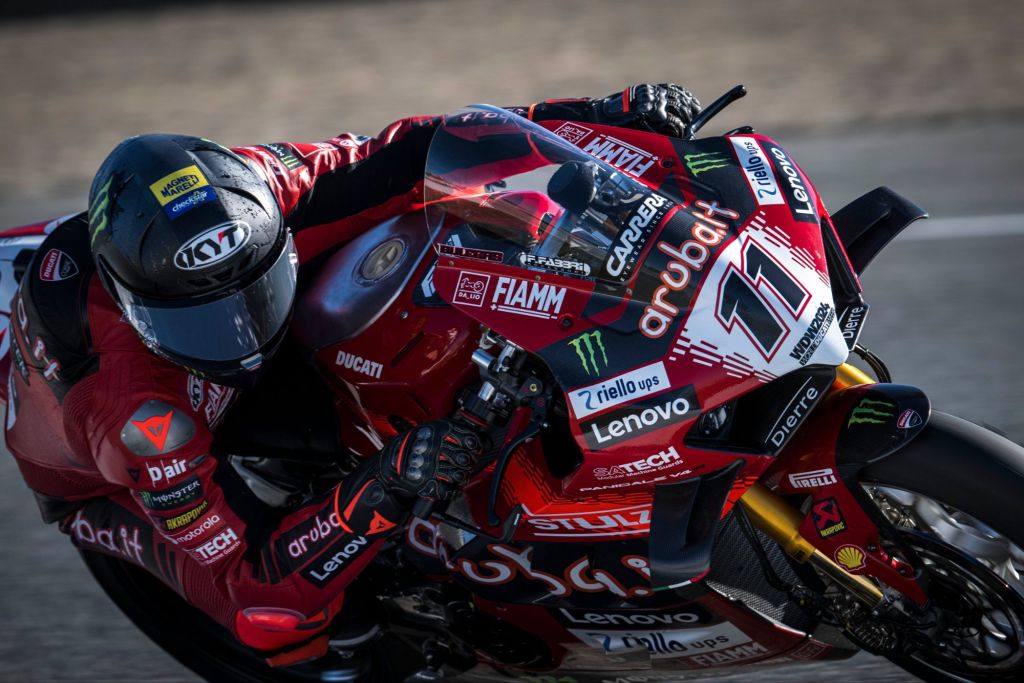 Buon inizio per Adrian Huertas e la Ducati Panigale V2 del team Aruba.it Racing WSSP. Il pilota spagnolo ha completato 124 giri migliorando oggi di oltre 6 decimi (1’41.942) il tempo fatto registrare nel Day-1 e chiudendo con il terzo posto tra i 13 piloti WorldSSP presenti in pista.