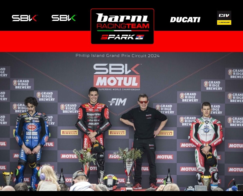 Il 24 febbraio 2024 è una data storica per il Barni Spark Racing Team. La squadra di Marco Barnabò ottiene la prima vittoria da quando è entrato nel Mondiale Supersport con la Panigale V2. Al termine di una gara perfetta, Yari Montella è salito sul gradino più alto del podio dopo aver piegato la resistenza di Manzi e di Schroetter. Il #55 ha condotto una gara di autorità, gestendo al meglio il flag to flag, ovvero il pit stop a metà gara imposto dal regolamento per l’eccessivo degrado delle gomme. È stato quello il momento chiave della gara: all’ottavo giro Montella è entrato per primo ai box per il cambio gomme e in quel frangente ha guadagnato quattro secondi sugli inseguitori. Da lì in avanti il suo ritmo è stato insostenibile per tutti, al giro 10 è arrivato anche il record in gara (1’31.271) che gli varrà la pole position nella gara 2 di domani. Per Yari è la seconda vittoria in Supersport, 462 giorni dopo la prima, ottenuta proprio qui a Phillip Island.