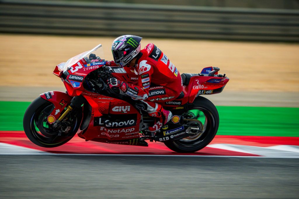 Il Ducati Lenovo Team ha chiuso al vertice la prima giornata in pista sull’Autodromo Internacional Do Algarve di Portimão, con Enea Bastianini autore del miglior tempo nella sessione di Libere del pomeriggio grazie al crono di 1:38.057 ottenuto a dieci minuti dal termine. Il compagno di squadra Francesco Bagnaia è stato invece in grado di recuperare diverse posizioni negli istanti conclusivi del turno pomeridiano, riuscendo a conquistare l’accesso diretto alle Q2 di domani grazie all’ottavo tempo (1:38.541).