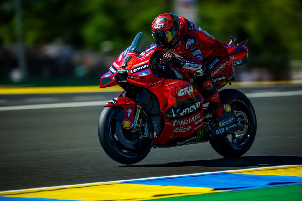 Bagnaia ha lavorato metodicamente sul set-up della sua Desmosedici GP #1 sia in ottica gara che per il time attack, provando diverse combinazioni di pneumatici nelle due sessioni. Visti i tempi sul giro molto ravvicinati tra i vari piloti, come da tradizione a Le Mans, l’ultimo run delle prove cronometrate è risultato fondamentale e, grazie ad un tempo di 1:30.533, Pecco si è garantito l’accesso al secondo turno di qualifiche, in programma domani alle 11:15 ora locale.