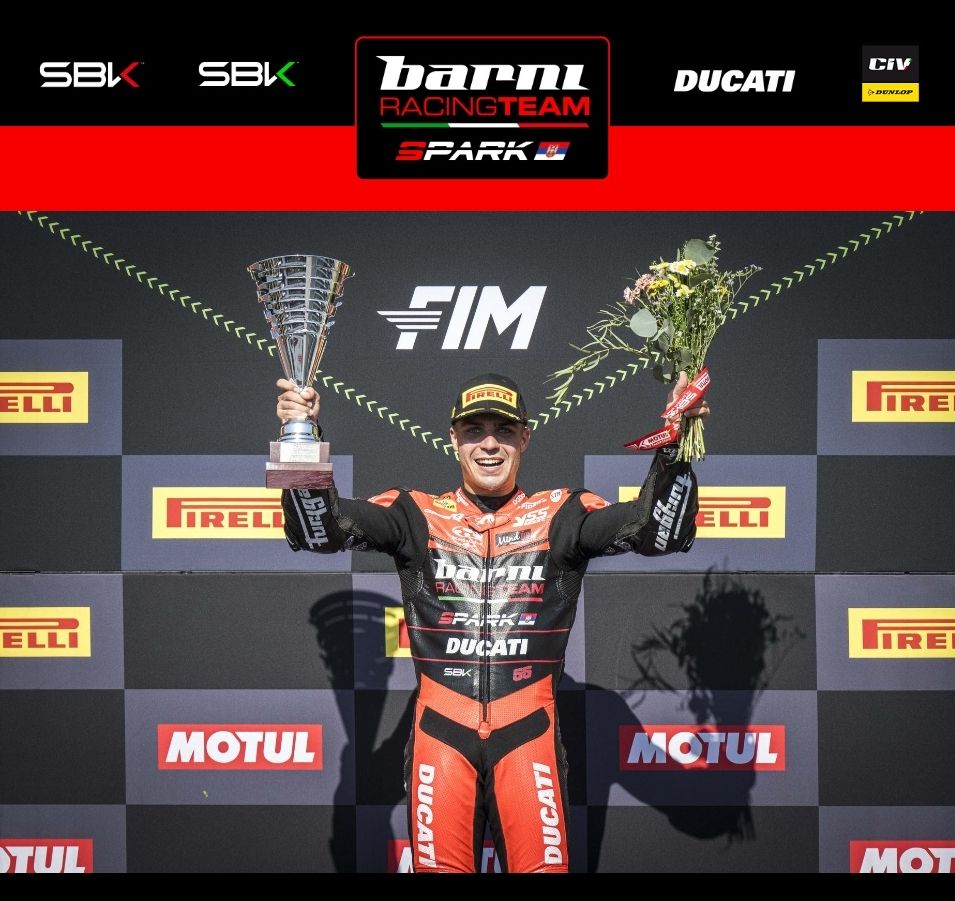 Una giornata praticamente perfetta per il Barni Spark Racing Team sul circuito di Portimao, settimo round del WorldSBK. Yari Montella ha stravinto gara 1 della Supersport, Danilo Petrucci è stato in testa a quella della Superbike per quasi metà gara, poi ha concluso sul podio insieme a Toprak e a Bautista. Due risultati che confermano le qualità dei piloti e della squadra guidata da Marco Barnabò.