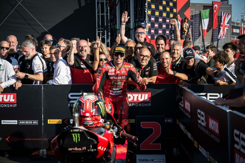 Gara-2 del Pirelli Portuguese Round ha regalato finalmente tante emozioni con Alvaro Bautista e Nicolò Bulega che sono riusciti a contendere la vittoria a Razgatlioglu (BMW).