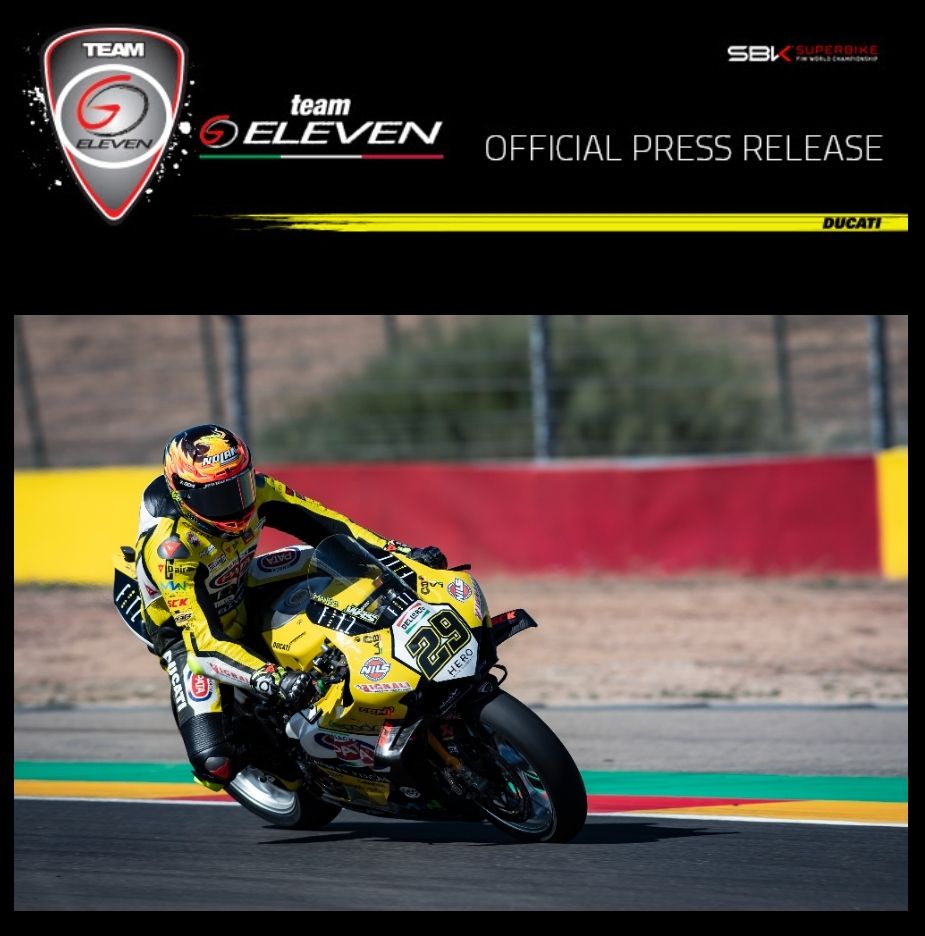 Le condizioni complicate al Motorland Aragon date dalla pista scivolosa e dal forte vento del pomeriggio hanno causato diverse problematiche ai piloti. Andrea Iannone e il Team Go Eleven hanno svolto una giornata intensa di lavoro in ottica gara, senza incappare in errori, dimostrando una buona solidità sul passo. La Ducati gialla #29 si è sempre piazzata nella top 6 in entrambe le sessioni, senza mai tentare un time attack con le coperture più morbide.