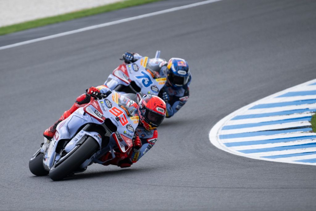 A Phillip Island subito un “uno due” che non vale un knock out, ma è che sicuramente un segnale importante per questo fine settimana downunder. Domina la scena Marc Marquez che nell’unica sessione odierna (le libere del mattino cancellate per maltempo) è primo praticamente sempre, specialmente a fine practice con un tempo quasi da record.