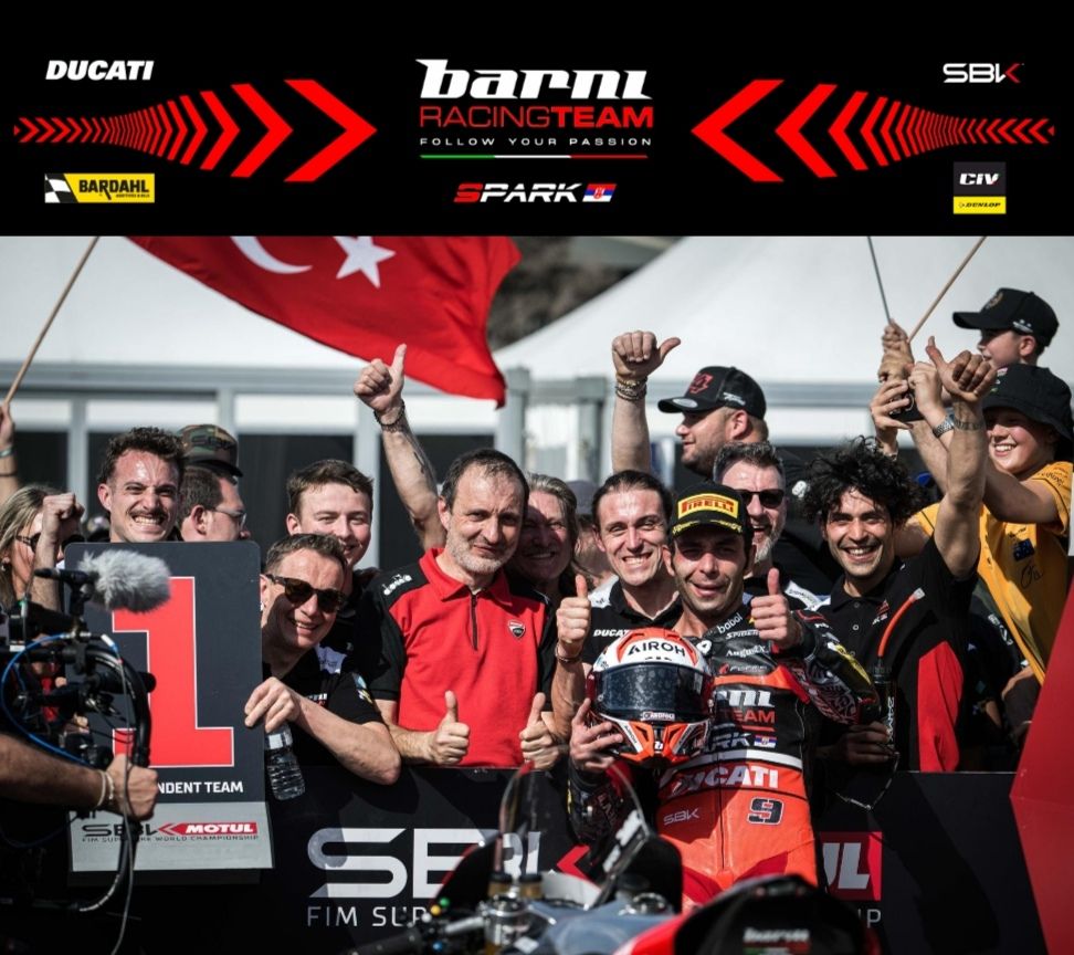 Scattato dalla quinta casella in griglia (Superpole 1.29.657), Petrux si inserisce subito nel gruppo degli inseguitori di Bulega, imprendibile sin dall’inizio, mantenendo la quinta posizione alle spalle di Bautista, Razgatlioglu e Redding. Dopo una dura serie di sorpassi e controsorpassi, con l’apertura della finestra per il cambio gomme, il numero #9 si precipita ai box, difendendo la quinta posizione al rientro in pista. Giro dopo giro, Danilo riesce a farsi sempre più aggressivo alle spalle di Redding, quarto con la sua Ducati, fino a sferrare il sorpasso decisivo al giro 17. Petrucci si aggiudica così la quarta posizione, miglior pilota tra gli indipendenti.