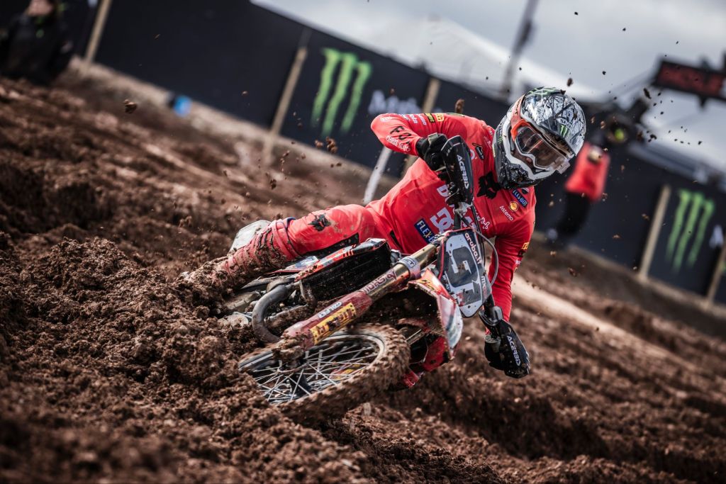 Canali profondi e buche scalinate non impediscono al pilota veneto di portare a termine una solida manche di qualifica in rimonta, condizionata da un avvio caotico a causa del fango e conclusa in undicesima posizione con un passo gara e un giro veloce da top ten. Più complicata la manche dello svizzero che dopo un’eccellente avvio di gara, arriva in fondo al rettilineo di partenza con la sua Desmo450 MX nel gruppo di testa ma che deve fare i conti con il fango insidioso della prima curva, dalla quale esce attorno alla quindicesima posizione. Un contatto con un doppiato che gli taglia la strada a metà gara, lo relega in diciottesima posizione sotto la bandiera a scacchi.