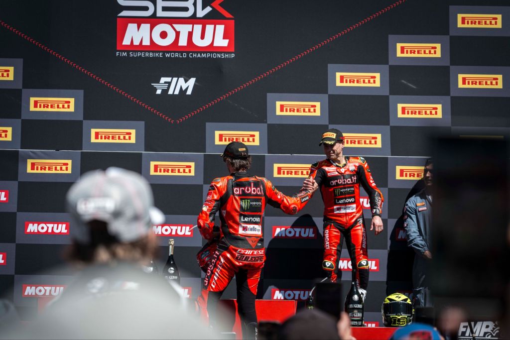 I piloti del team Aruba.it Racing – Ducati chiudono infatti sia la Superpole Race che Gara-2 rispettivamente in seconda e terza posizione dietro a Toprak Razgatlioglu.