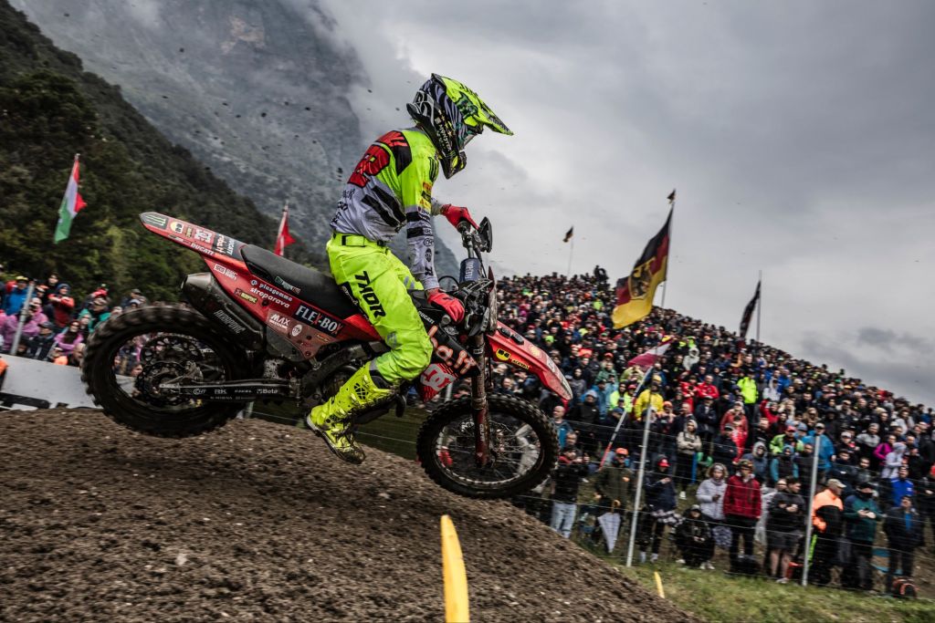 Il Gran Premio MXGP del Trentino si è tenuto oggi sul tracciato del Ciclamino di Pietramurata, a pochi chilometri dalla riva nord del Lago di Garda. Dopo l’eccellente terzo posto nella qualifica del sabato, Jeremy Seewer ha preso il via di gara uno in settima posizione, seguito da Antonio Cairoli, scattato magnificamente dall’ultimo cancelletto con la sua Desmo450 MX. Lo svizzero ha trovato subito un buon ritmo, guadagnando una posizione dopo sei giri, portandosi a ridosso della top 5, prima di tagliare il traguardo 6°. Positiva anche la prova del 9 volte Campione del Mondo, 13° dopo una scivolata dovuta alle braccia indurite nel corso della manche. Al via di gara due Seewer è scattato nuovamente bene, trovandosi 3° all’ingresso della prima curva, salvo perdere l’anteriore e finire a terra, venendo travolto dagli avversari che sopraggiungevano alle sue spalle. Ottimo anche l’avvio di Cairoli che è però stato chiuso alla prima curva, passando fuori dai 20 sulla linea dell’hole-shot. Con una gara generosa il siciliano ha terminato 19°, raccogliendo punti e dati preziosi, mentre Jeremy, ripartito ultimo e molto attardato, ha tentato l’impossibile, guidando per tutta la seconda frazione senza freno anteriore, sfiorando la zona punti e recuperando 14 posizioni. Il prossimo appuntamento con la MXGP è tra otto giorni sul tracciato di Frauenfeld per il Gran Premio di Svizzera.