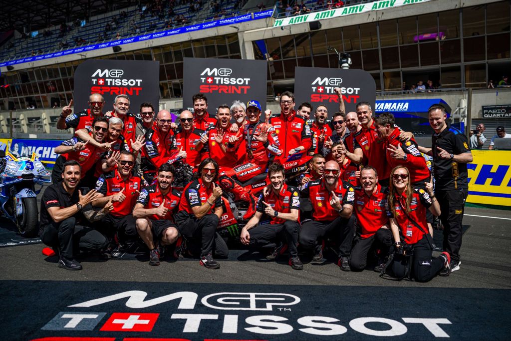 Il Ducati Lenovo Team ha conquistato un’altra vittoria del sabato grazie al successo di Marc Márquez nella Sprint di 13 giri di Le Mans, in quello che è il sesto evento della stagione. Francesco Bagnaia è stato vittima di una scivolata al secondo giro.