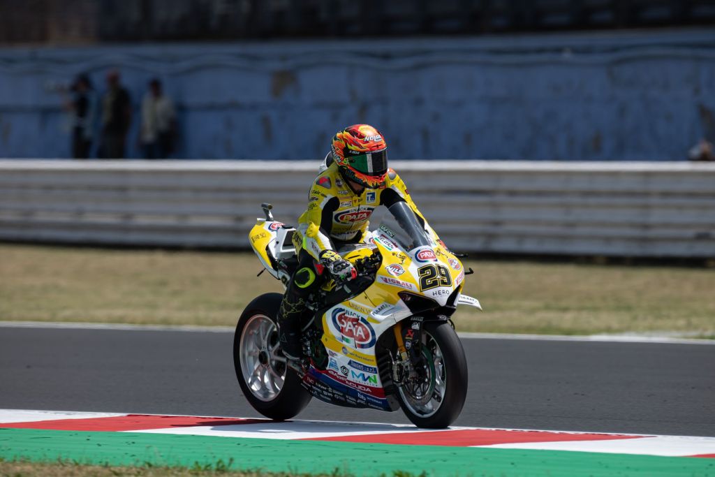 Misano, un weekend sfortunato, iniziato con il piede sbagliato sabato e terminato nella ghiaia di Gara 2. Jump start in Superpole race, infrazione della pressione minima in griglia al pomeriggio, con conseguente partenza dal fondo dello schieramento, rimonta fino all’ottava posizione, poi caduta a pochi giri dal termine.