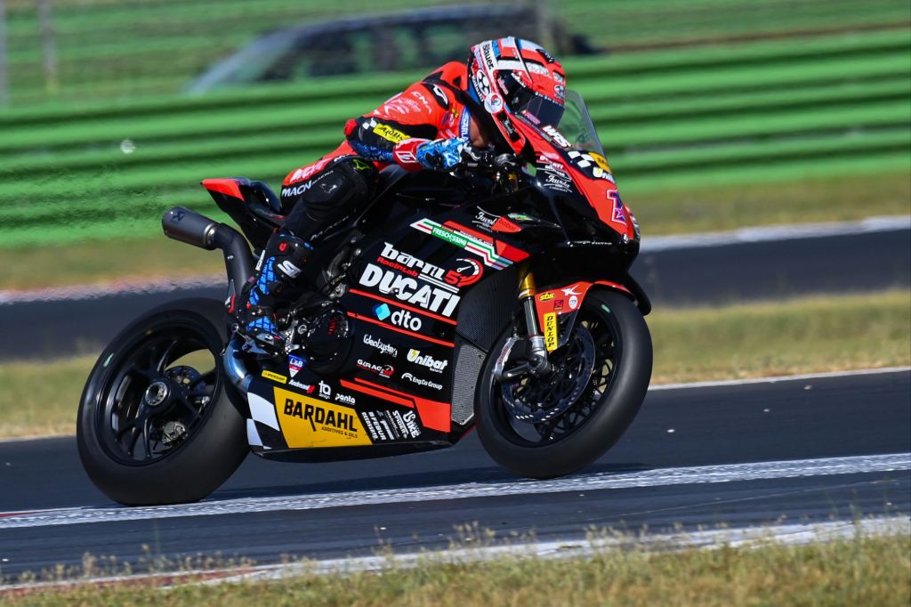Molto positiva anche la prova di Filippo Rovelli, che ha confermato le buone sensazioni già emerse nei test. In sella alla Panigale V4 bibraccio, ha chiuso entrambe le sessioni con l’ottavo tempo assoluto e, soprattutto, con il terzo miglior riferimento nella categoria Production Bike: 1.38.239 in FP, seguito da un costante 1.38.320 in Q1.