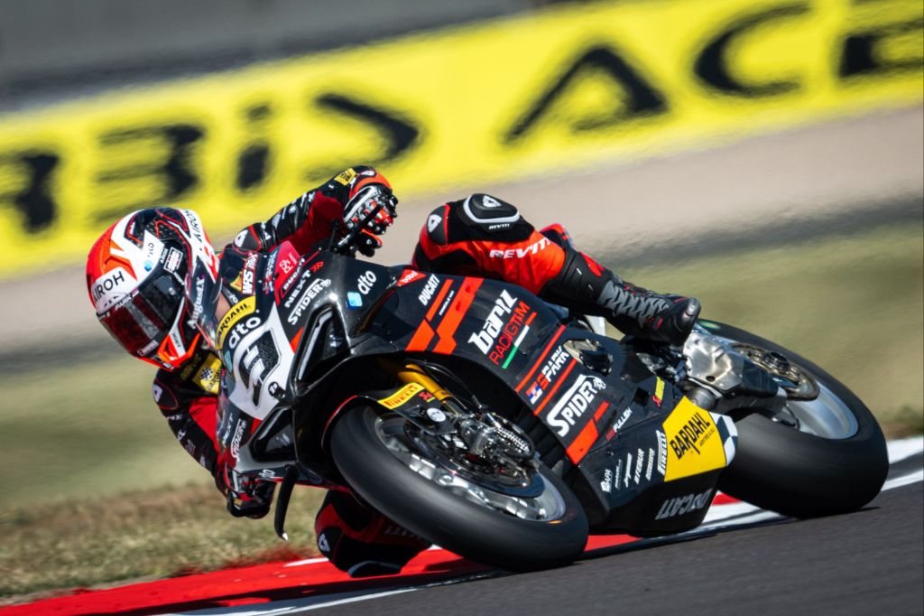 Temperature decisamente sopra la media per gli standard inglesi hanno accolto i team nella prima giornata di azione a Donington Park, dove si è aperto il round britannico del Mondiale Superbike. Nelle FP1 del mattino, entrambi i piloti completano due run, accumulando 20 giri totali, lavorando sul setup e prendendo confidenza con la pista inglese. Danilo Petrucci chiude in P4 con il crono di 1.26.948, a +0.404 dal miglior tempo del pilota di casa Alex Lowes. Yari Montella, al primo approccio con la pista di Donington Park con la Superbike, si migliora proprio nel finale, piazzandosi in P7 con 1.27.219 (+0.675).