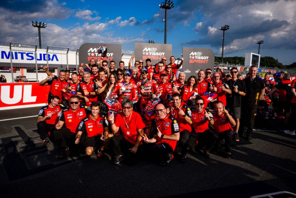 I Ducati Lenovo Team ha trionfato nella Sprint giapponese con Francesco Bagnaia, dominatore nella gara di 12 giri al Mobility Resort Motegi. Marc Márquez ha chiuso la corsa al secondo posto, consolidando ulteriormente la possibilità di assicurarsi il titolo piloti già al termine della gara di domani.