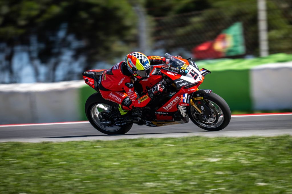 Il sole dell’Autódromo Internacional do Algarve accoglie il primo giorno della seconda tappa del WorldSBK, segnando anche l’inizio della stagione europea. Condizioni meteo ideali, in netto contrasto con quelle incontrate durante i test invernali, permettono al Barni Spark Racing Team di tornare in pista con fiducia.