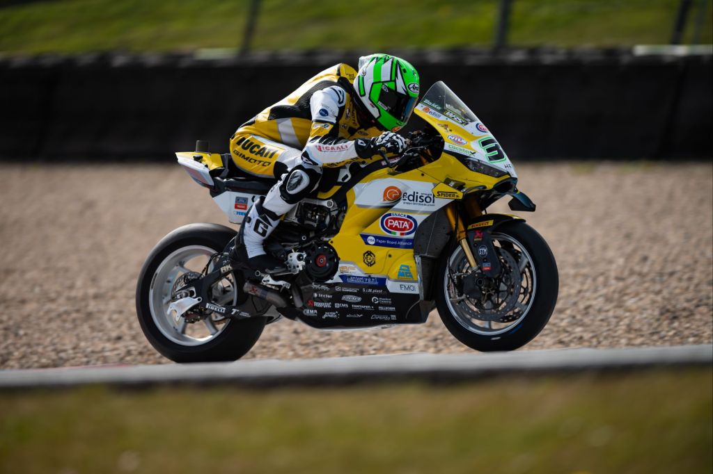 In FP 1 il numero 34 ha impiegato un paio di passaggi per trovare il giusto ritmo; una prima sosta ai box per tarare il set-up al meglio e poi 18 giri consecutivi stampando un convincente 1.34.5 verso fine sessione. Buon ritmo, sempre sul 34 alto, a certificare una solida FP 1. Quarto posto finale, a mezzo secondo dal primo posto. Non male come esordio ad Assen in sella alla Ducati Go Eleven!