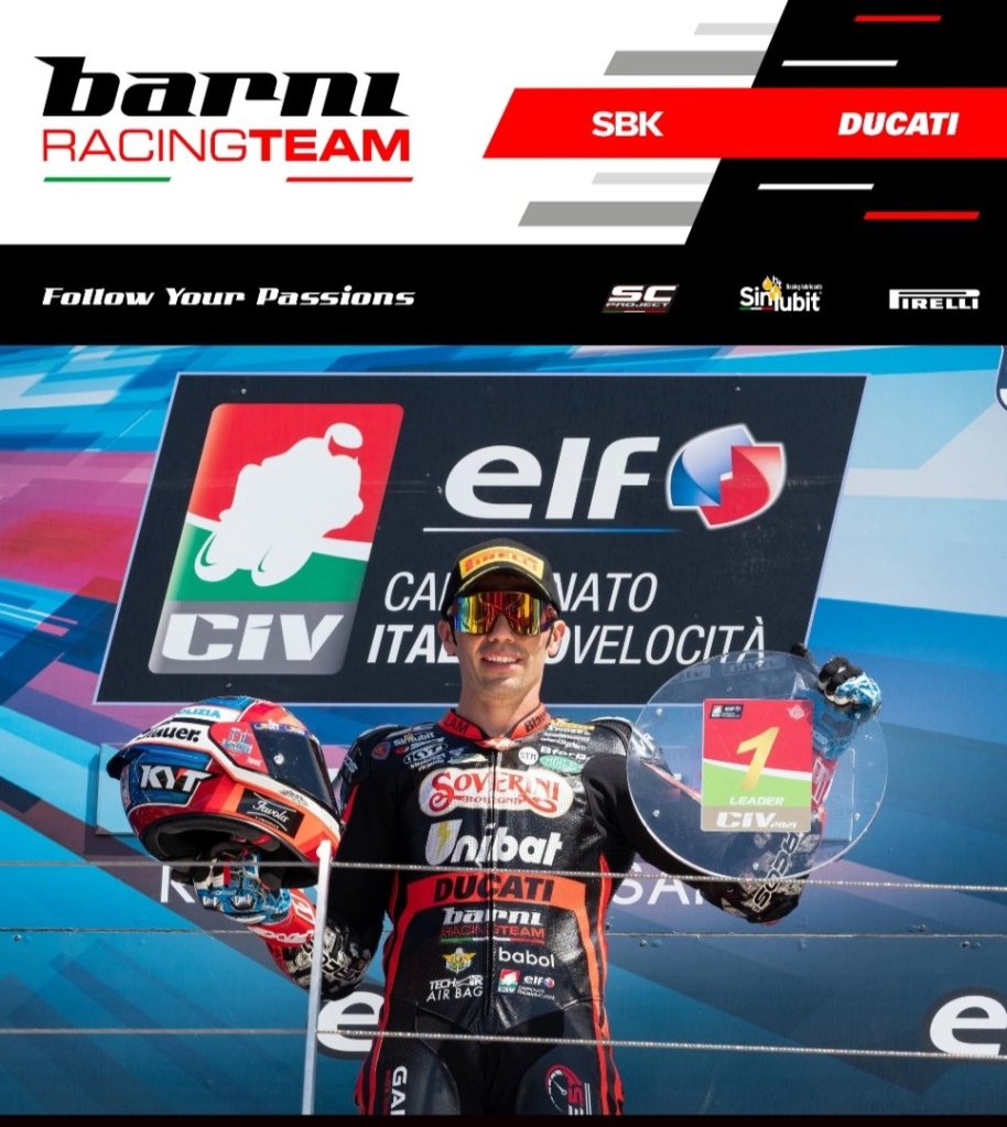 Non è la prima volta che Pirro compie un’impresa del genere con una moto del Barni Racing Team. Era il 24 settembre 2017 e al Mugello Pirro cadde alla prima curva di gara 2, sul bagnato, ma fu capace di rimontare e andare a vincere con margine. Questa volta lo ha fatto in un’altra pista e in un’altra condizione atmosferica: ai 35 °C di Misano Adriatico.