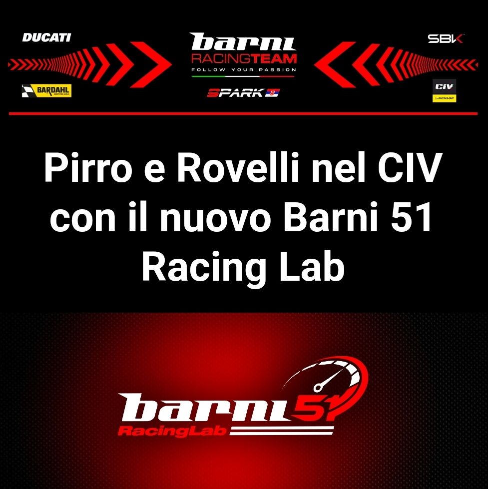 Marco Barnabò, Team Principal “Siamo pronti per una nuova stagione del CIV Superbike, ancora più entusiasti di rafforzare la collaborazione tra il team Barni e Michele Pirro, che porta con sé anche un nuovo nome per il team. Con Michele daremo il massimo per confermare i risultati dello scorso anno, anche se la sfida sarà impegnativa: il livello degli avversari cresce di stagione in stagione. Non vediamo l’ora di affrontare la categoria Production Bike, dove potremo sfruttare la nuova moto con forcellone bi-braccio, una scelta mirata a supportare un pilota giovane e competitivo come Rovelli e a sviluppare al meglio i nuovi prodotti Ducati. Una categoria che rappresenta un’opportunità interessante, con costi più contenuti e un maggiore risalto per il talento dei piloti.”