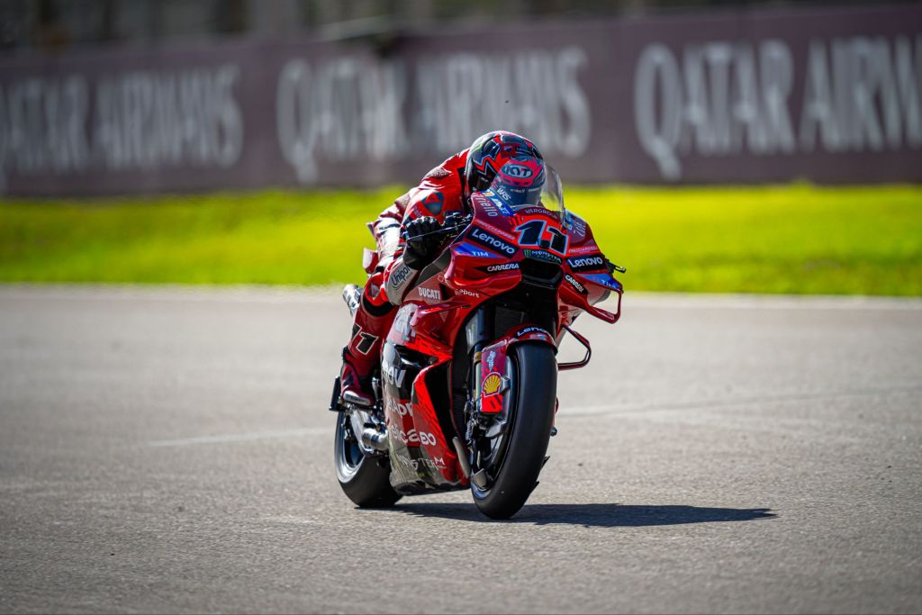 Dopo un incoraggiante secondo posto nelle FP2, Bagnaia è stato limitato da un inconveniente nella Q1, terminando le qualifiche in sedicesima posizione. Nella Sprint, Pecco è risalito fino al tredicesimo posto nei primi giri, per poi chiudere quattordicesimo in volata. Nicolò Bulega, dalla ventiduesima casella dello schieramento, si è fatto strada fino alla sedicesima posizione alla bandiera a scacchi, mantenendo un passo costante in sella alla Desmosedici GP.