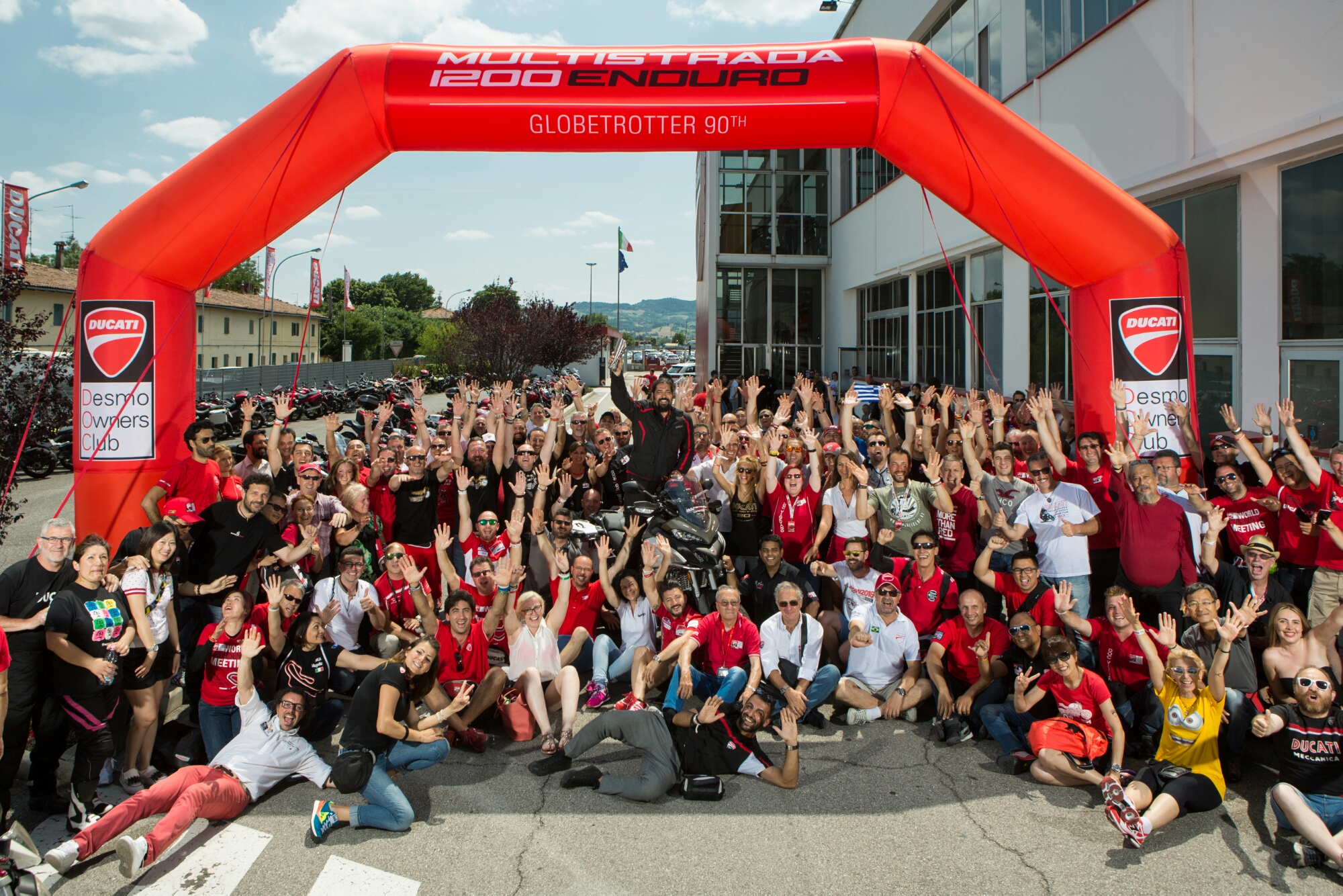 Poi, la Multistrada 1200 Enduro è arrivata a Firenze per salutare un’altra leggenda vivente della Ducati: Giuliano Maoggi, classe 1926, che nel 1956 vinse il 4° Motogiro d’Italia sulla Gran Sport 100, detta Marianna, progettata da Fabio Taglioni. Valicato il mitico passo della Futa, ecco l’arrivo a Borgo Panigale il 15 dicembre concludendo così l’indimenticabile Globetrotter 90°.
