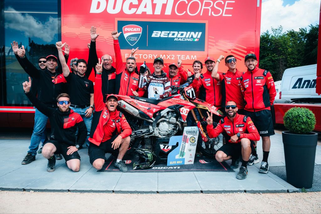 Si conclude così con una vittoria la stagione 2025 del Team Beddini Racing Ducati Factory MX2 e della Ducati Desmo250MX che con Lupino conquista il quinto podio dell’anno e il secondo posto finale nel campionato italiano Pro Prestige MX2.