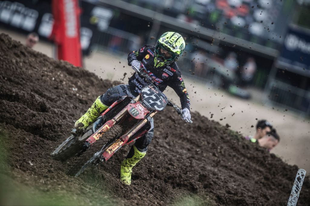 Dopo aver esordito al Nazioni con la Desmo450 MX nella giornata del sabato, Antonio Cairoli e Jeremy Seewer, entrambi impegnati nella classe regina del più importante evento della stagione ed essersi qualificati con l’8° e il 12° posto per le gare della domenica, si sono schierati al via delle due manche che li hanno visti competere contro i piloti della MX2 in gara 1 e contro quelli della classe Open nella terza.