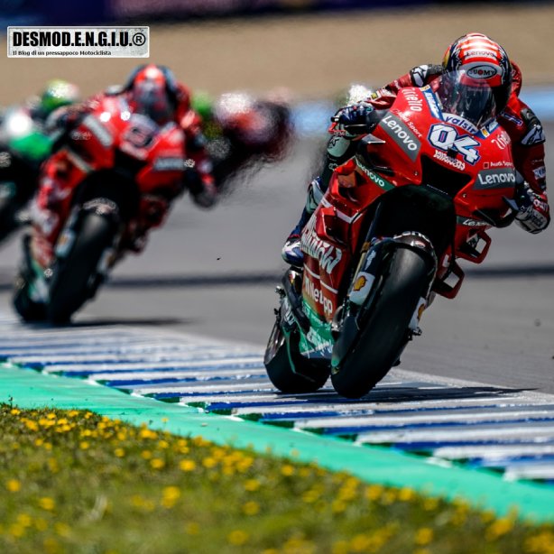 Dovizioso, nonostante un ottimo spunto alla partenza, è stato poi coinvolto in un contatto alla seconda curva nel corso del primo giro, ed ha dovuto recuperare posizioni riuscendo a risalire a metà gara fino al secondo posto, che ha poi difeso fino alla bandiera a scacchi. Prestazione caparbia anche per Petrucci, partito dalla prima fila con il secondo tempo in qualifica che, dopo aver perso terreno nel corso del secondo giro, e riuscito a risalire fino a portarsi alle spalle del compagno di squadra a sette giri dal termine.