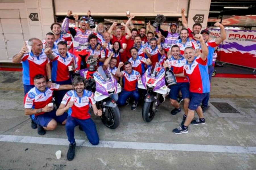 Il team Prima Pramac Racing festeggia al completo sotto il podio al termine di una domenica da ricordare.