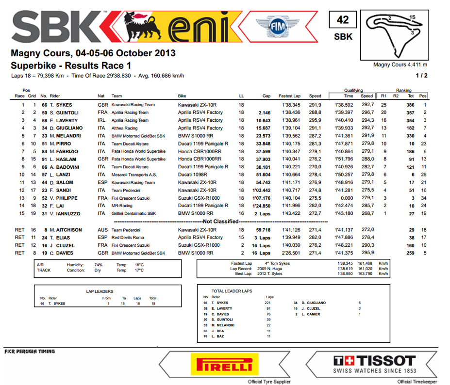 1. Tom Sykes – Kawasaki Racing Team – Kawasaki ZX-10R