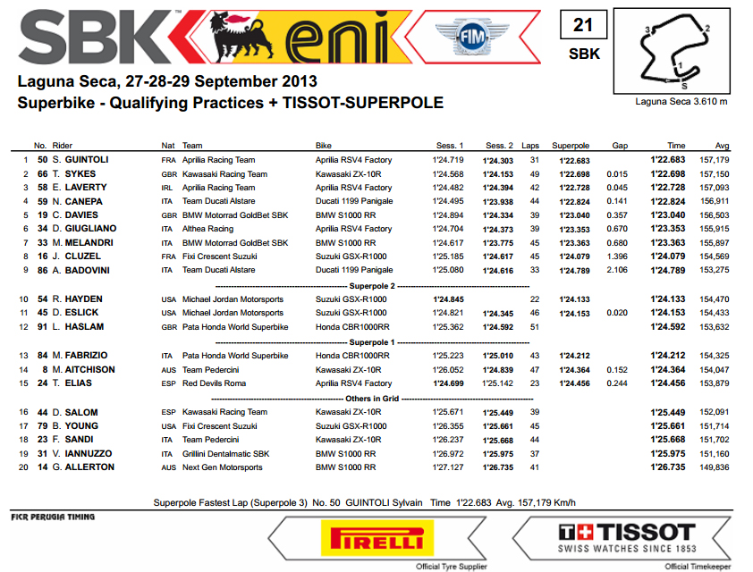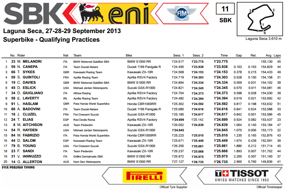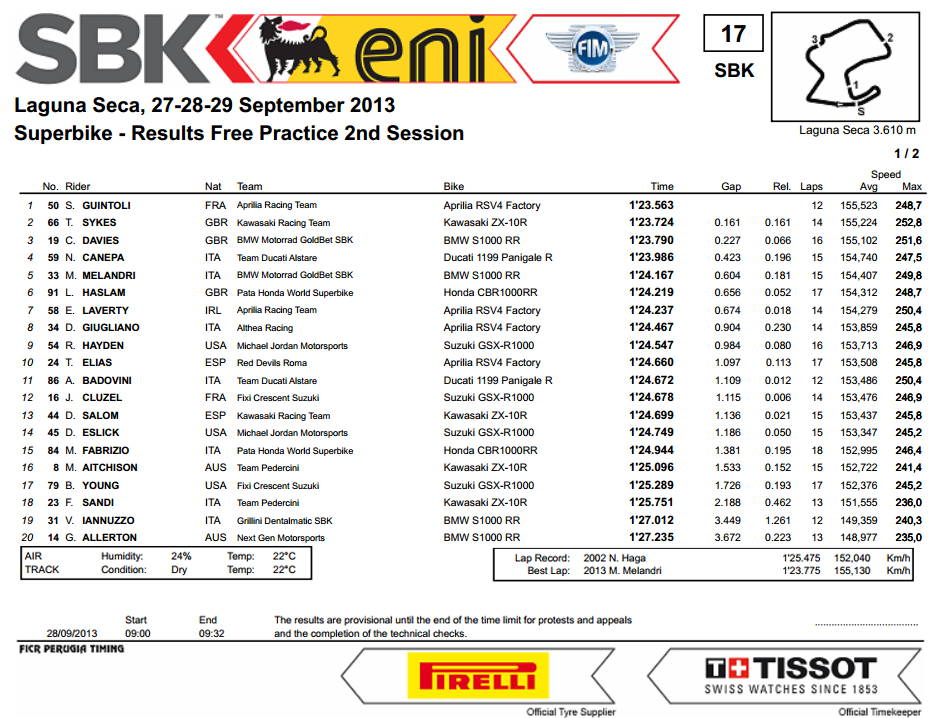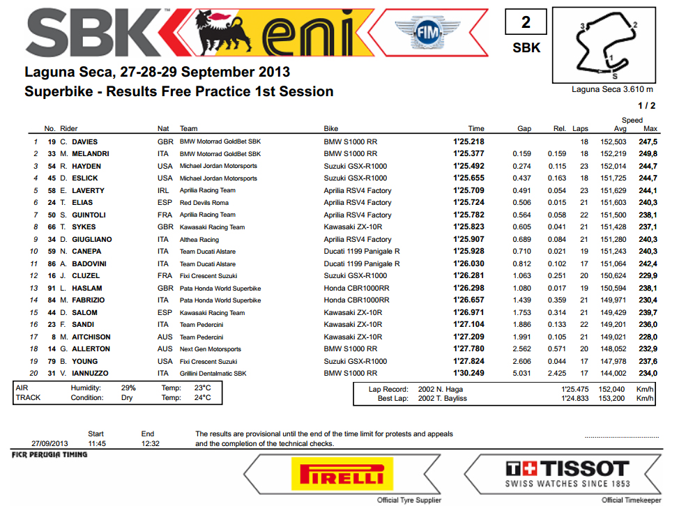 Mazda Raceway Laguna Seca, Classifica Gara 1