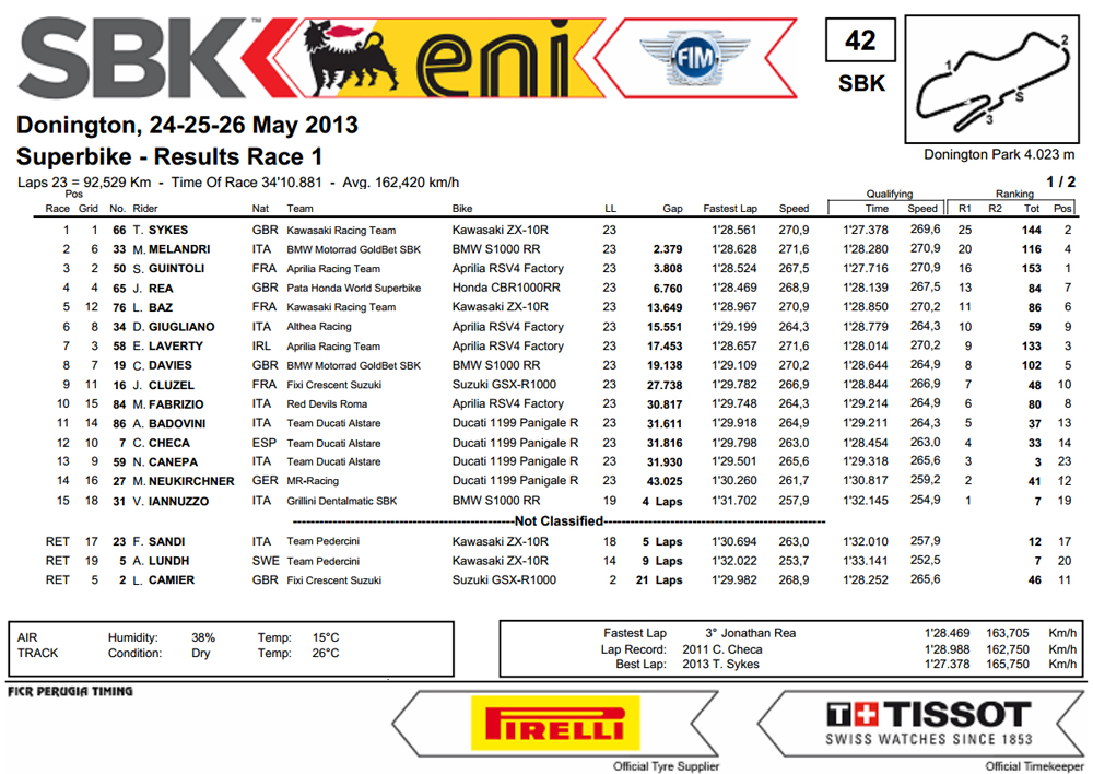 Donington Park Racing Circuit, Classifica Qualifiche 1