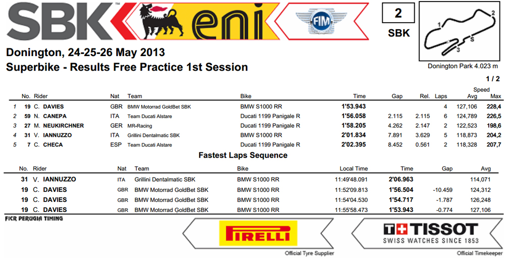 Donington Park Racing Circuit, Classifica Prove Libere 1
