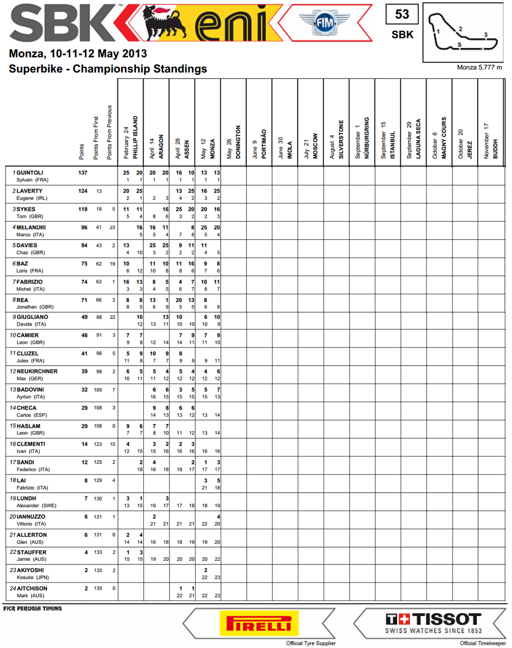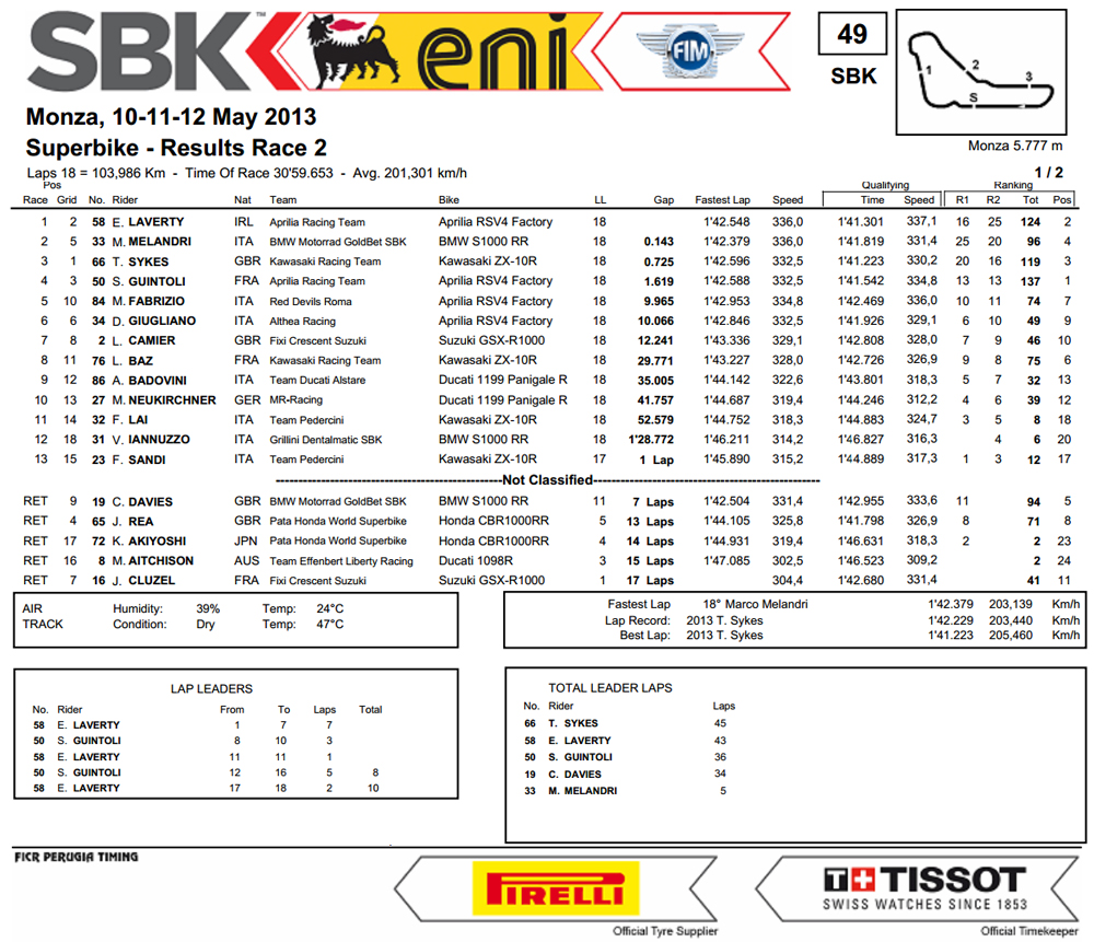 12. Carlos Checa – Team Ducati Alstare – Ducati 1199 Panigale R – + 31.816