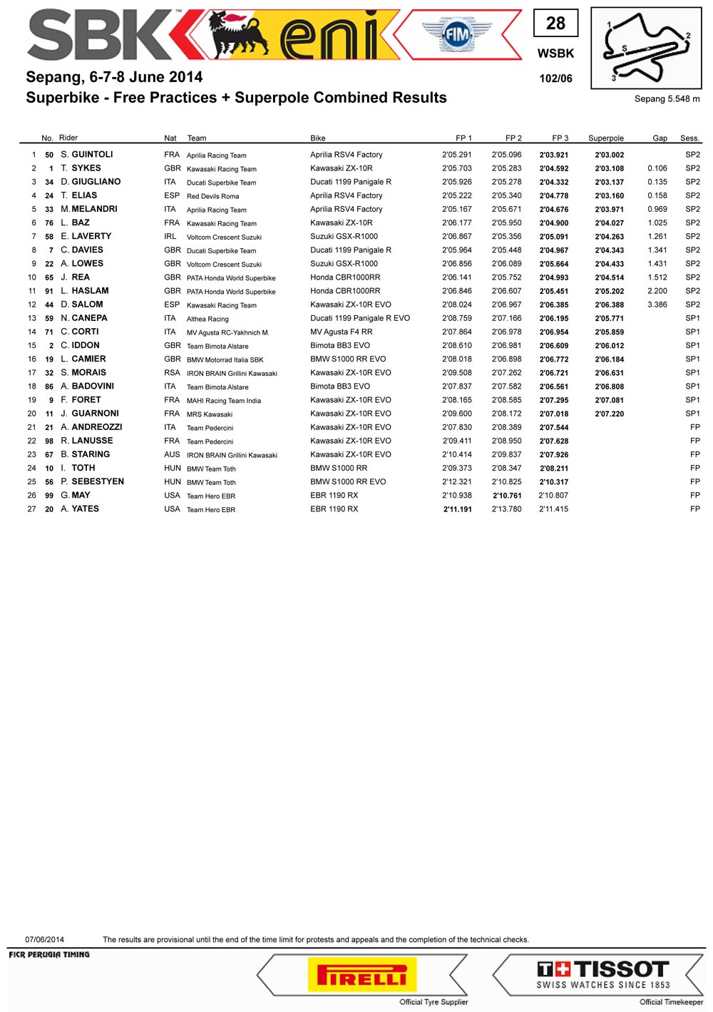 “Mi dispiace un po’ per gara 1. Non è la prima volta che Baz fa una cosa del genere e questa volta alcuni dei piloti sono caduti ed io ho perso tante posizioni, evitando di cadere a mia volta. Ho cercato di accelerare il più possibile e sono riuscito a sorpassare parecchi piloti, ma ad un certo punto non avevo più grip. La seconda gara è andata piuttosto male. Siamo ripartiti bene ma dopo soli tre giri ho sofferto ancora per un calo di grip che non mi ha permesso di guidare come avrei voluto. Una giornata difficile ma posso dire che in queste condizioni, e considerando che per l’influenza ero molto debilitato fisicamente, finire le gare è già un buon risultato – ottavo e decimo non sono posizioni che mi soddisfano, ma questa volta mi accontento.”